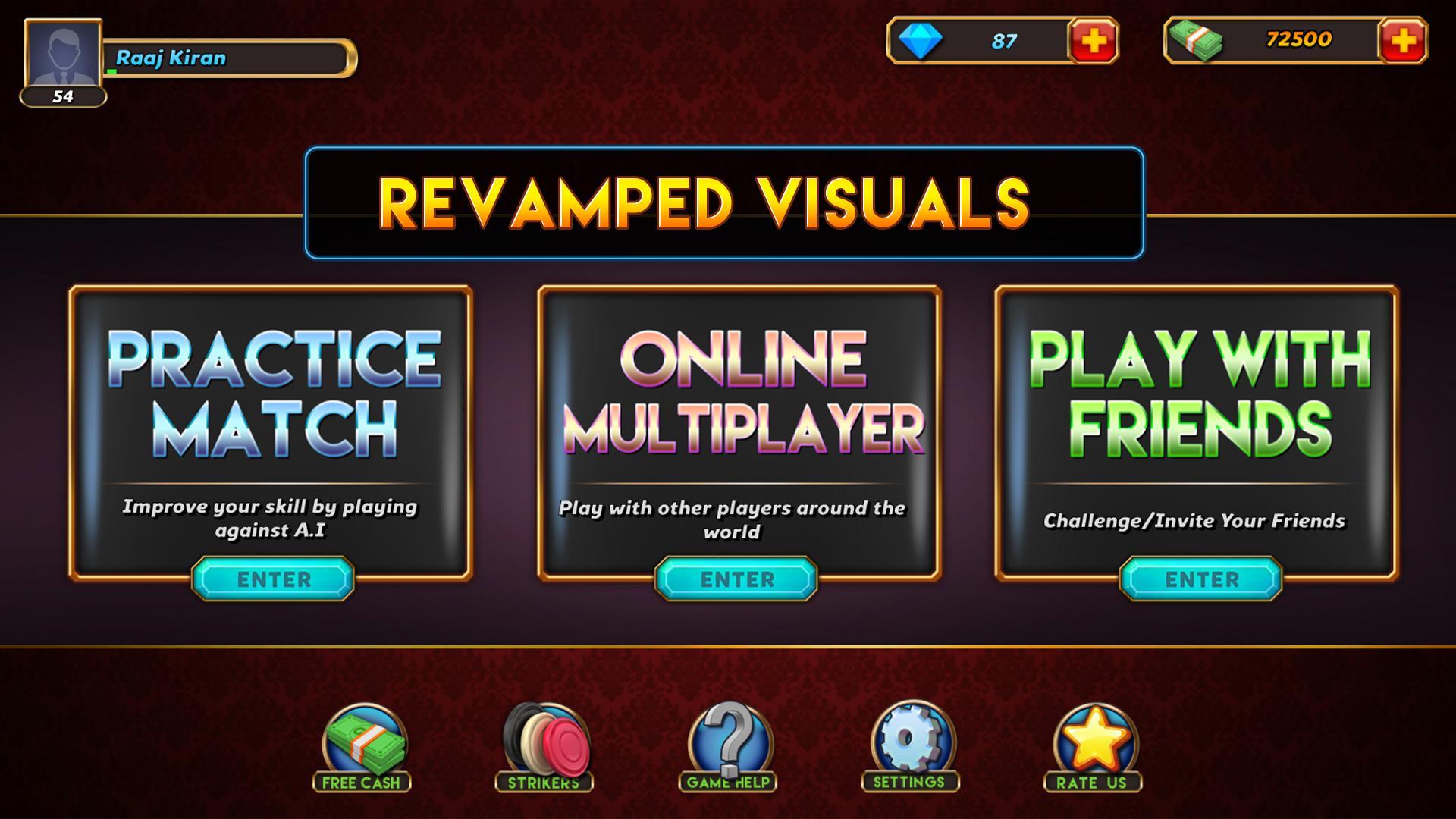 Juega el increíble juego de Carrom multijugador lleno de diversión en Mobile.