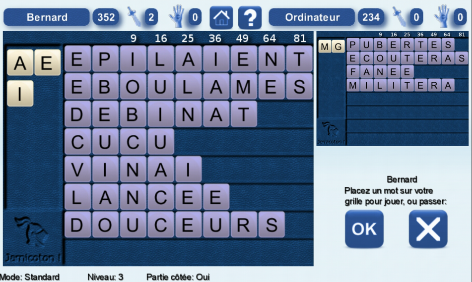 El juego consiste en una bolsa de letras y una alfombra por jugador.