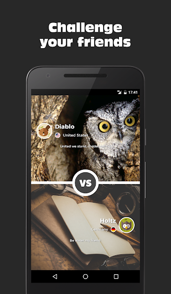 Desafía a tus oponentes en un juego de duelo rápido. Responda una cantidad de preguntas que serán iguales para ambos jugadores donde el ganador será la que adivine más bien. También desafíos temáticos disponibles.