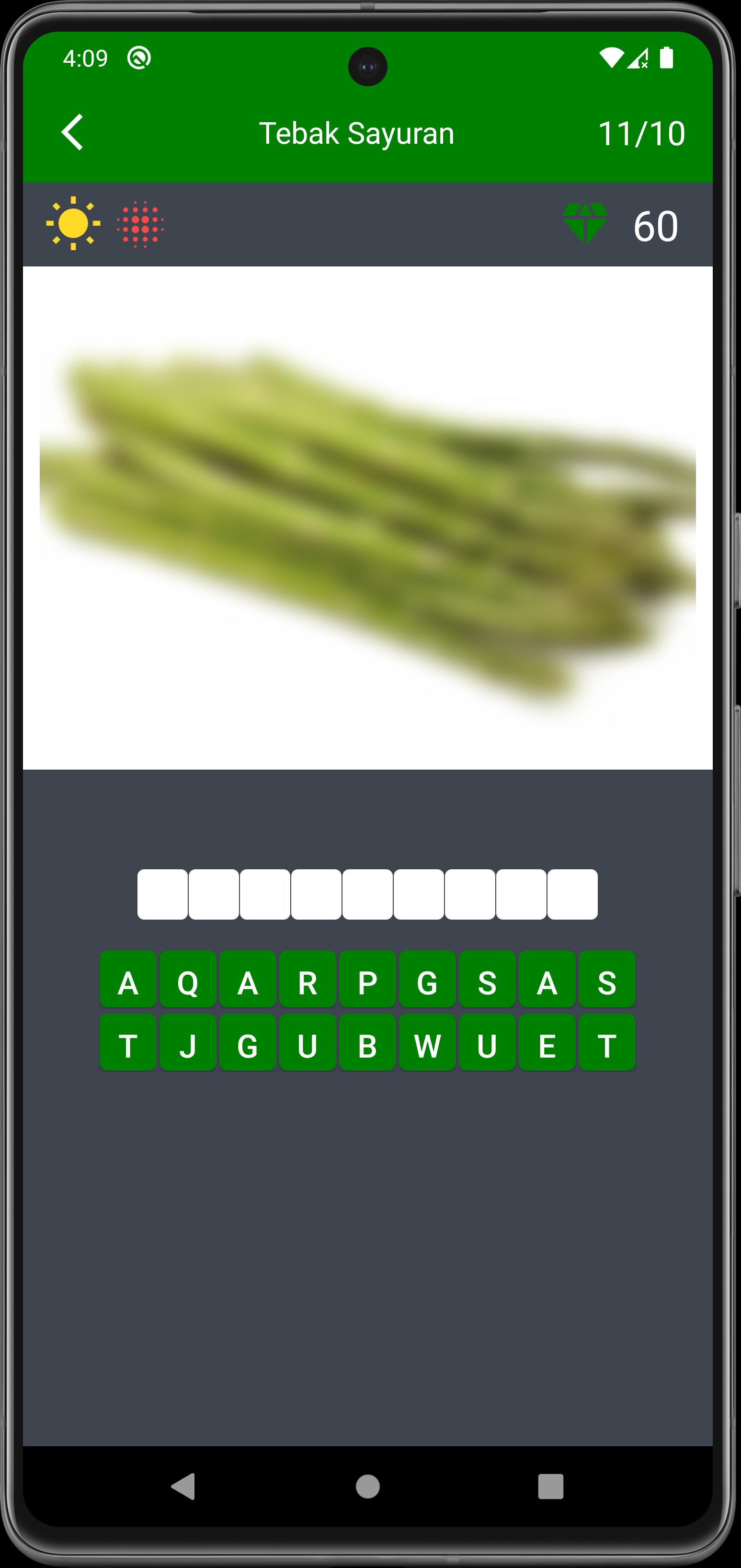 En este juego pusimos en el estándar indonesio con una ortografía buena y correcta. Juego adivina este archivo de verduras para que el programa sea ligero y fácil de operar para todas las edades, tanto niños, adolescentes y adultos.
