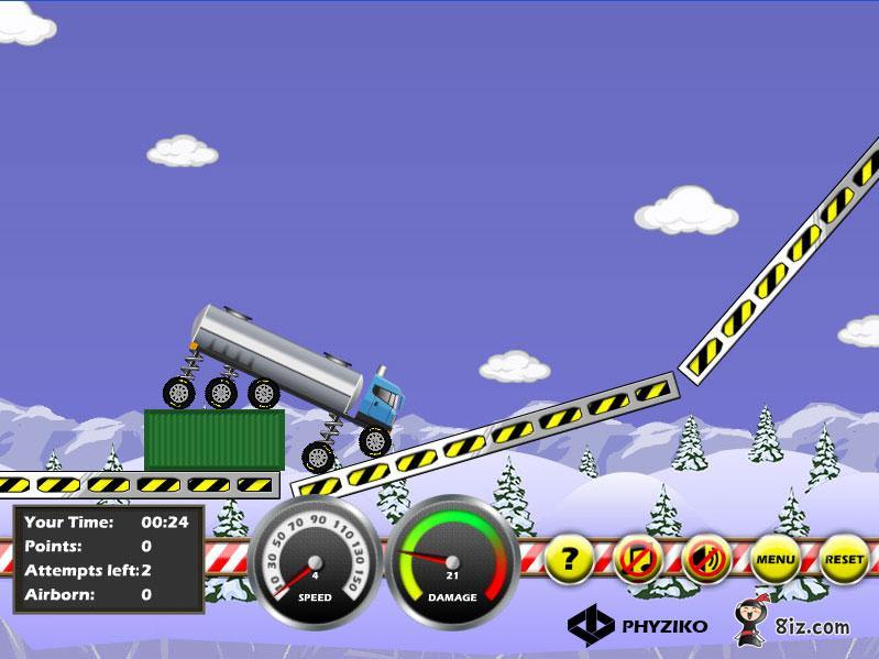 The Truck Driver es un juego de conducción de camiones con excelente física, pistas interesantes y largas y todo tipo de camiones. Su objetivo es llegar a la línea de meta en el tiempo dado sin destruir su camión. Conducirá 16 camiones totalmente únicos en 24 niveles. Conduzca por el valle, la jungla, la ciudad día y la noche, los picos de hielo y el desierto.
