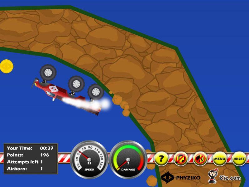 En la parte inferior de la pantalla, encontrará un temporizador, puntaje, número de intentos, velocímetro, indicador de daño y todos los botones que necesita.
