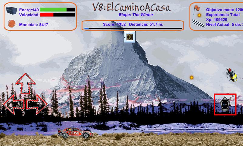 Además, recoja monedas en el camino y ahorra energía para acumular más monedas, lo que servirá en el taller para comprar nuevas armas o características especiales para su V8.