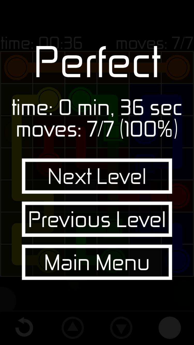 En el modo de campaña hay 200 niveles que se dividen en 10 etapas (cada etapa tiene 20 niveles). Todos los niveles en el juego se generan aleatoriamente, así que no espere encontrar ninguna solución en Internet. Las primeras etapas del juego se pueden completar con bastante rapidez, pero las etapas posteriores toman mucho más tiempo. Me llevó 6 horas completar todos los niveles en mi primer intento. No es necesario resolver los niveles utilizando una cantidad mínima de movimientos porque ese tipo de estadísticas ni siquiera se guardan en ningún lado. Siéntase libre de usar tantos movimientos y tiempo como necesite para resolver cualquier nivel.