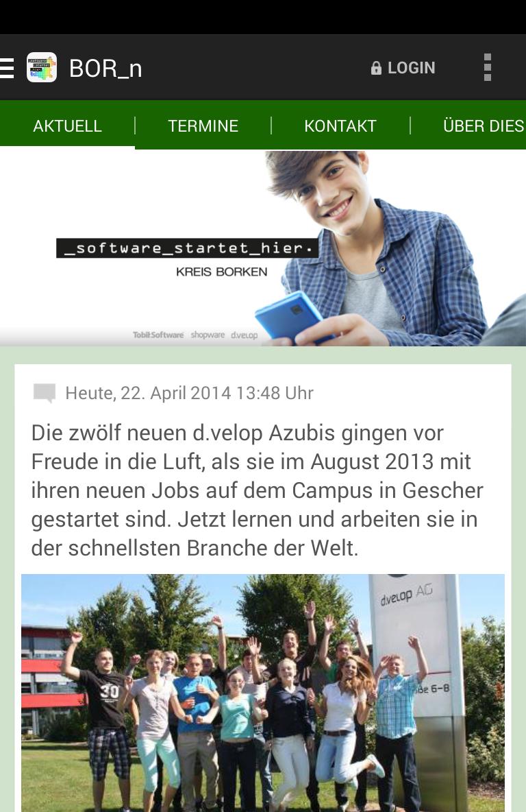BOR_n est l'application de votre avenir dans l'industrie du logiciel dans le district de Borken. En un coup d'œil, vous obtenez toutes les nouvelles de la formation, des stages et des études dans la vallée de Sillicon dans le Münsterland. Ici, les sociétés informatiques importantes de la région sont représentées dans une seule plateforme. Obtenez l'application sur votre smartphone maintenant et commencez votre chemin vers l'industrie la plus rapide du monde.