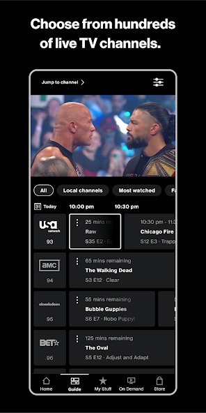 - Choisissez parmi des centaines de chaînes de télévision en direct et diffusez des milliers de