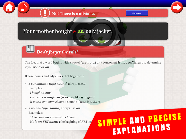Cette application est idéale pour les faux débutants et les utilisateurs avancés qui ont déjà une bonne base dans le vocabulaire, mais qui ont besoin de travailler sur leur grammaire. Les vrais débutants devraient utiliser EnglishTrackerKids, qui est également disponible dans cet App Store.