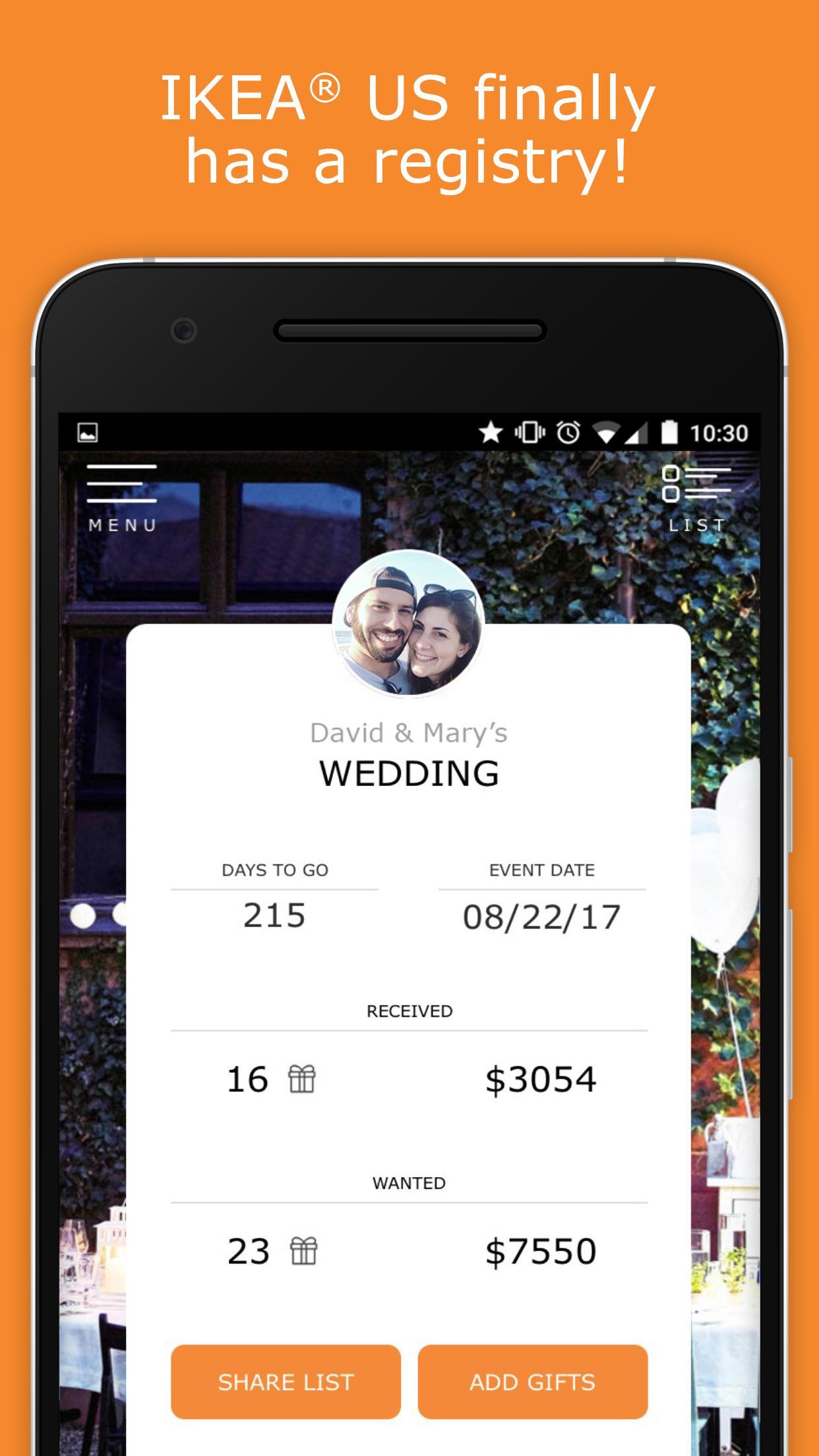 · Obtenez des cadeaux d'invités n'importe où dans le pays - les amis et la famille peuvent facilement voir votre liste en ligne sans télécharger l'application, puis acheter en toute sécurité un cadeau de votre liste en ligne ou dans n'importe quel magasin IKEA US