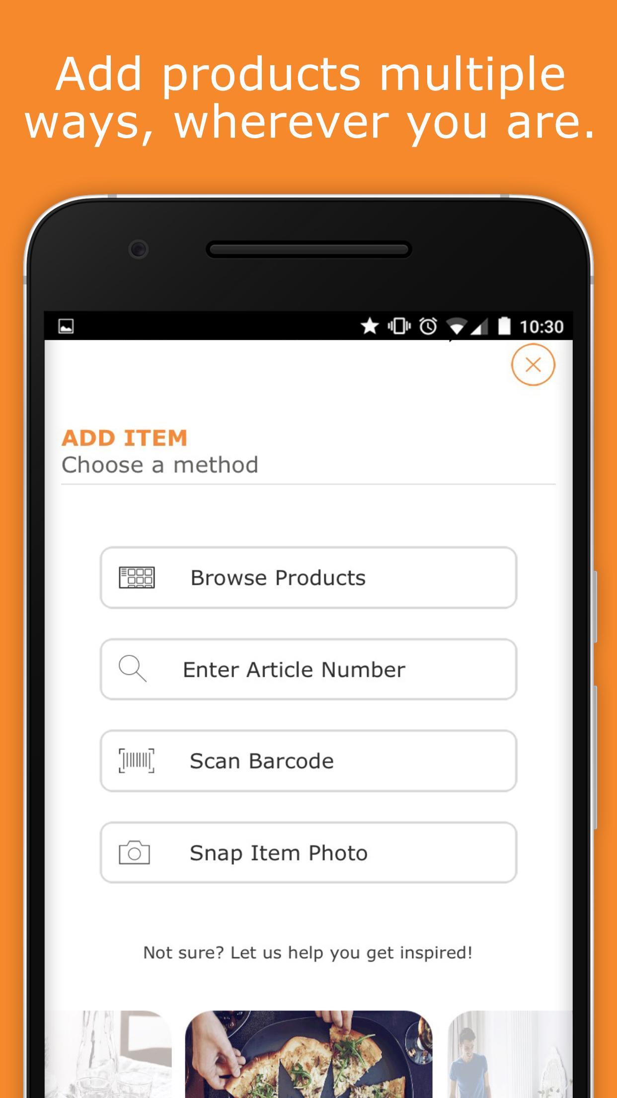 · Ajouter tous les produits IKEA en scannant des codes à barres dans une boutique IKEA, en entrant des numéros d'article directement à partir du catalogue IKEA ou en recherchant le catalogue IKEA directement dans l'application