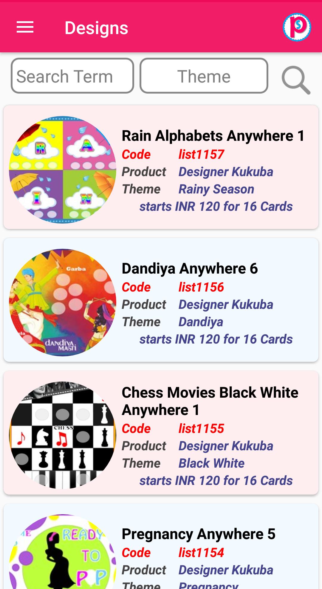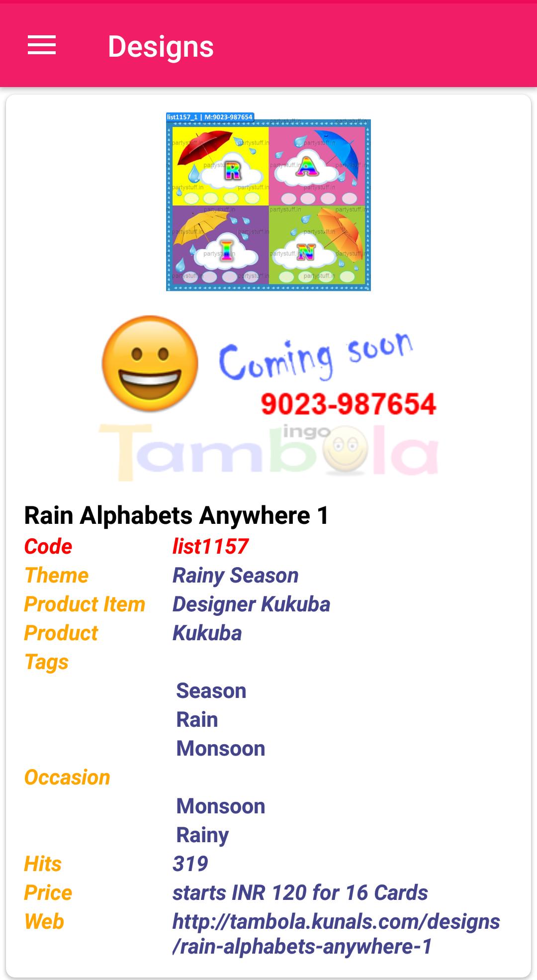 Les utilisateurs peuvent rechercher des conceptions pour Tambola Houie, Bingo, jeux papier, cartes d'activité et plus encore en fournissant un terme de recherche ou par naviguer sur le thème. Les conceptions peuvent également être filtrées en fonction du produit, de l'élément de produit, de l'étiquette et de l'occasion, etc.