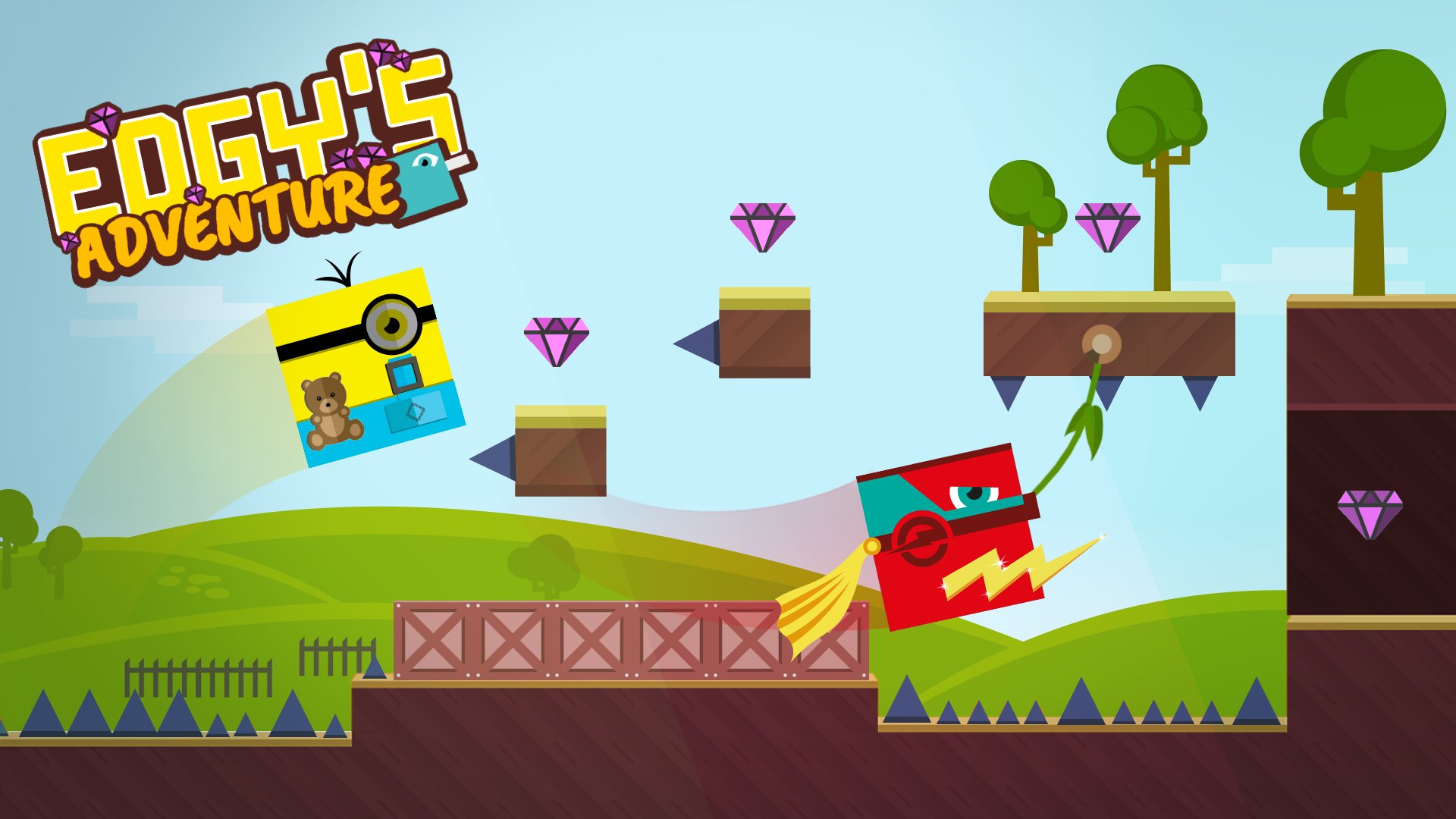 Alors s'il vous plaît, aidez-moi dans mon aventure, sautez, balancez-vous et faites-moi voler à travers plus de 20 niveaux pour sauver mes amis. Mon voyage est pavé de pièges et d'obstacles mais aussi de diamants pour pouvoir acheter des tenues de folie. Allons-y!