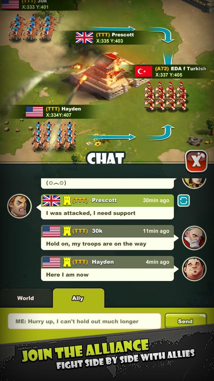 Vos adversaires et alliés viennent du monde entier. Vous pouvez unir avec des alliés mondiaux pour vaincre tous les adversaires qui entravent votre développement, pour diriger votre royaume sur le chemin de la plus haute distinction du monde.