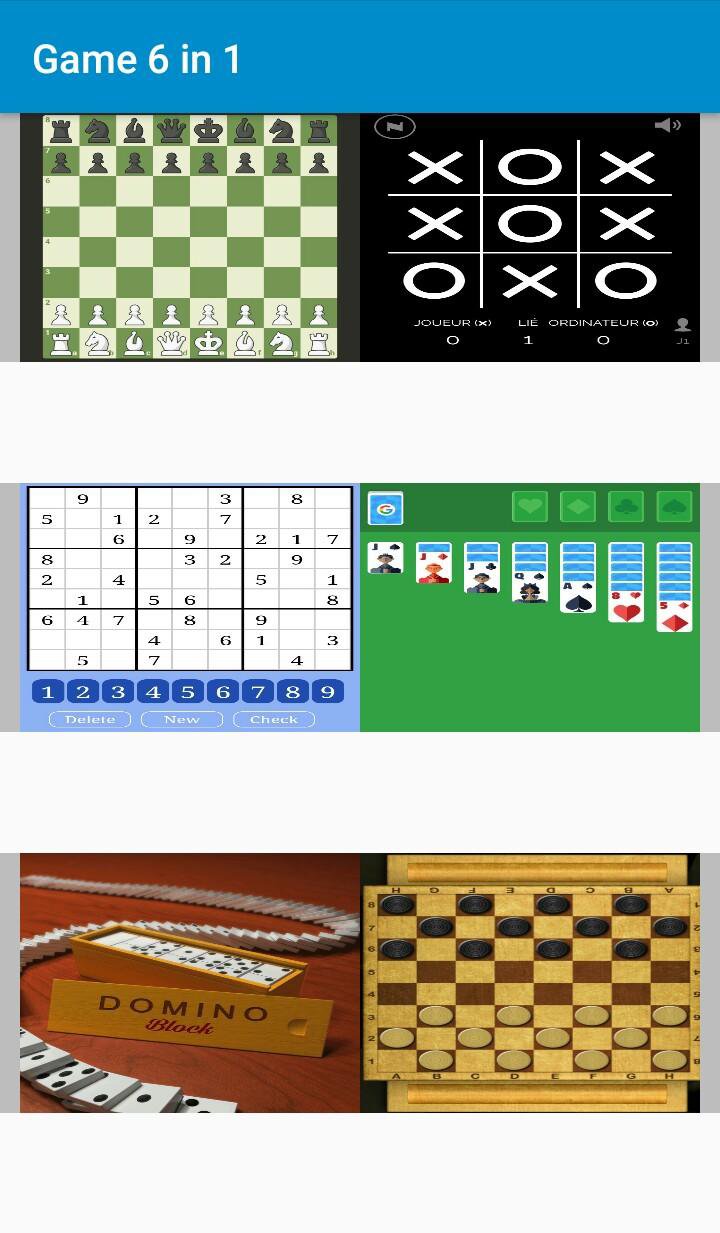 Six jeux dans une seule application. C'est notre nouveau jeu. Jeu de Domino et aussi échecs et Dama. De nombreux jeux vous attendent sur l'application Game 6 in 1