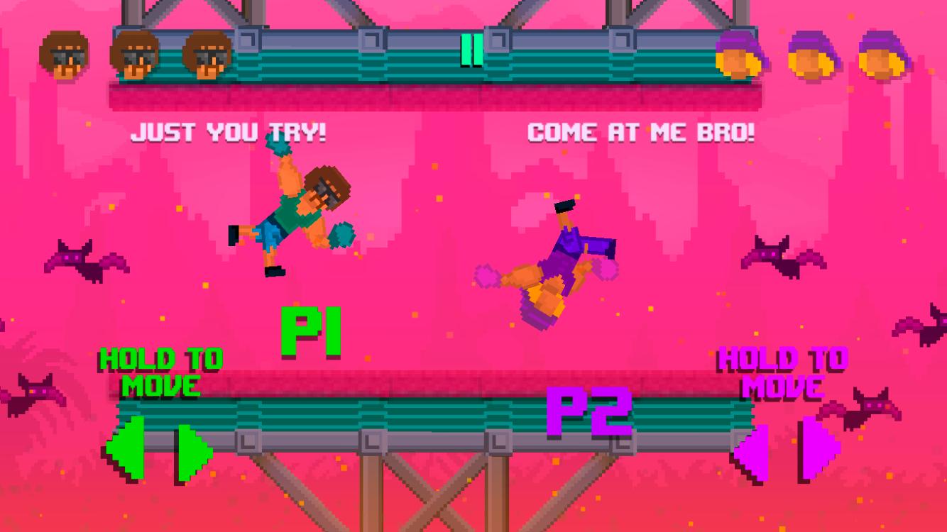 Battez votre ami dans une bataille MMA en une seule fois ou testez vos compétences contre le puissant joueur de CPU! Luttez, lancez et frappez votre adversaire de la plate-forme et dans la lave ci-dessous!