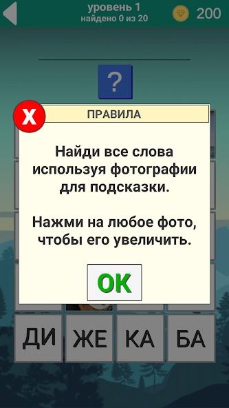 At each level, you have 20 photos available, with which you must guess 20 hidden words to complete the level. Photos are opened one at a time, and you have access to a certain number of photos.as you guess them, others will be available to you. The game is available in 7 languages: English, Russian, Spanish, Italian, Portuguese, German, and French.