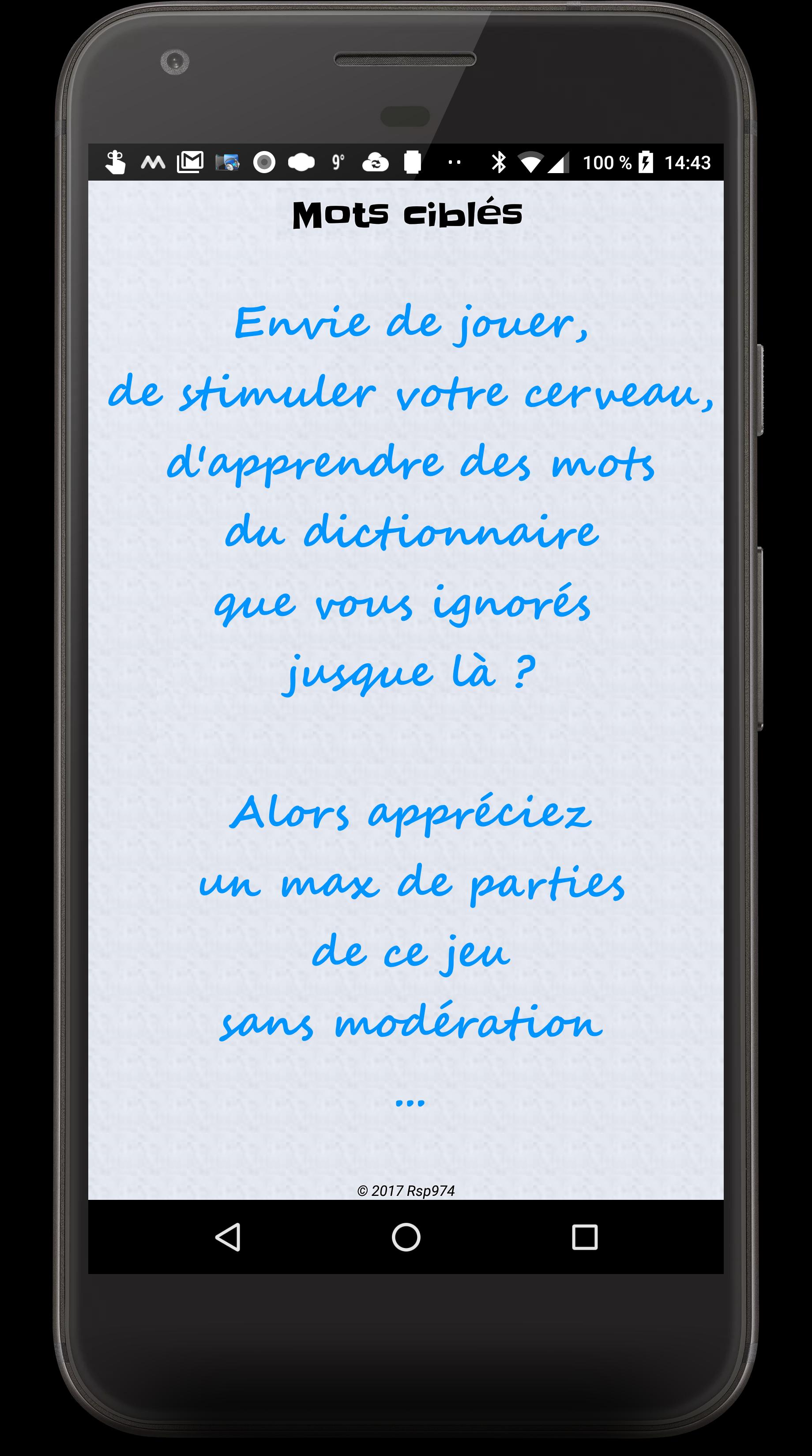 If you're a fan of anagrams, reflection games like arrow words, scrum words, Scrabble ™, numbers and letters etc, which you are anxious to improve your vocabulary and spelling then this game is for you!