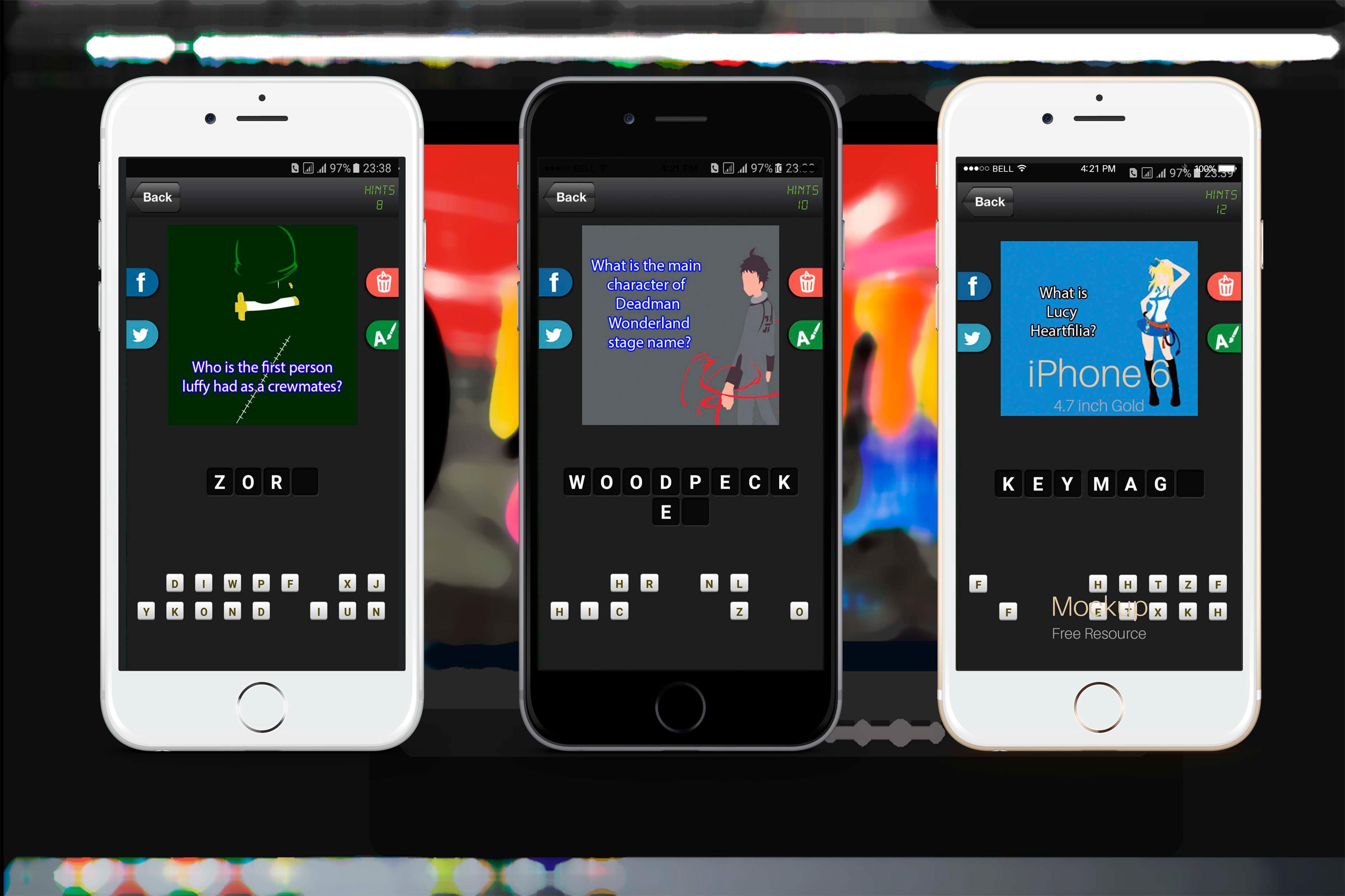 Install this ''Anime Guess & Quiz game'' and you will have access to plenty of levels, continually updated. Different anime games like Characters and symbol trivia Guess names, Quiz to solve and much more.