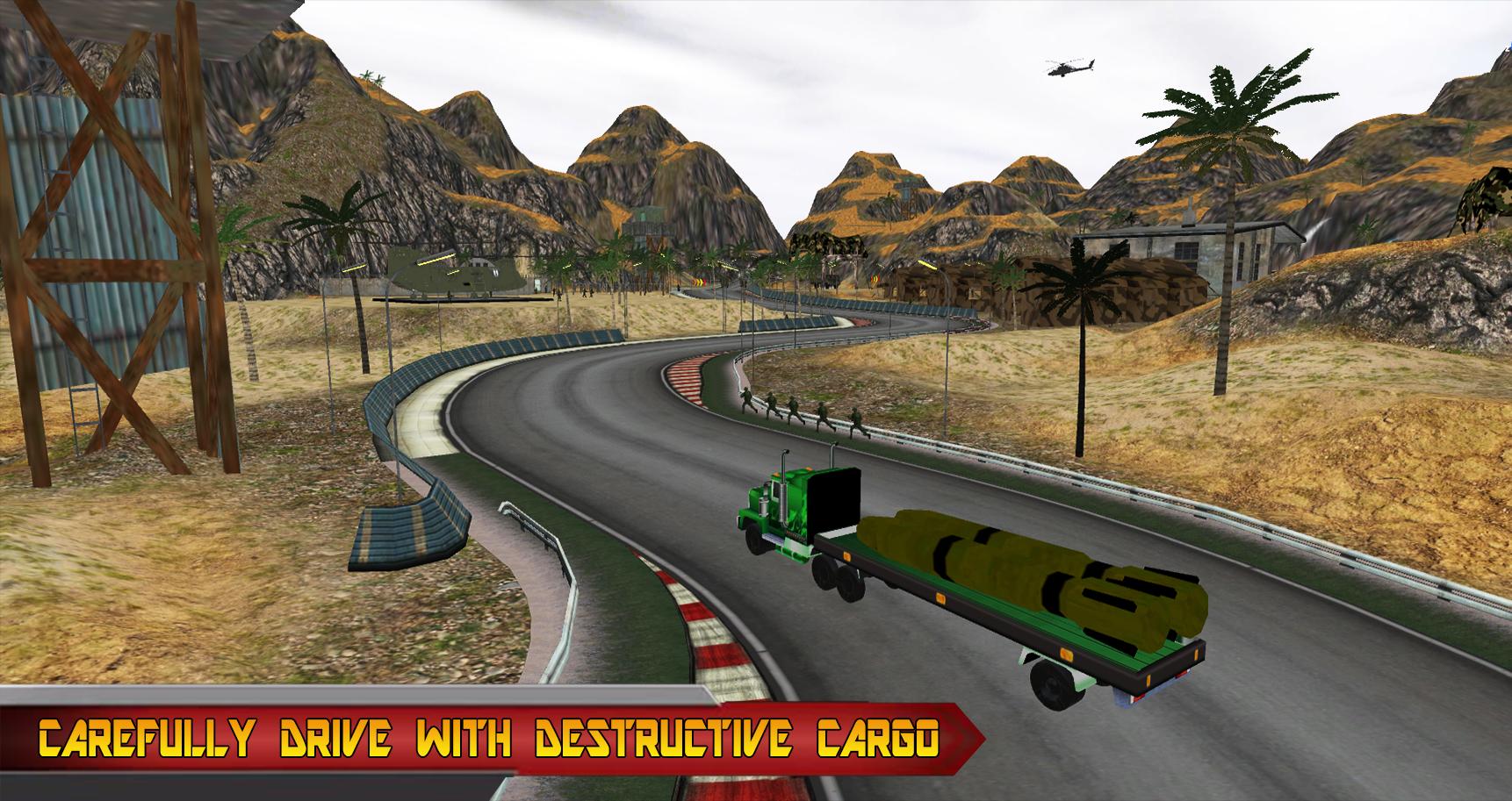 Army Cargo Simulator 3D - Trailer Transporter Duty is a new army game with duty of transportation of army load like supply, weapons, soldiers and army missile bombs with military surrounding war zone environment.