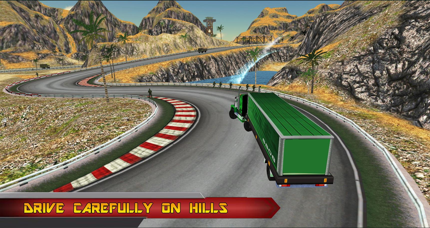In this army truck simulator 3d game, you are a soldier who manages and operates all Army vehicles in combat on all forms of roads as required, carrying a variety of specific army loads including cargo, personnel and dangerous goods, Battle Tank and Warrior weapon like missile bombs. Acquire the cargo transport and deliver the required cargo and equipment, combat Service to army camp.Don’t rush or smash your vehicle otherwise you will crash. Be a Brave Soldier and don't hit your vehicle with soldiers otherwise you will fail your mission. Take your army transport truck and drive it carefully to the destination. Playing as the army truck driver is a difficult task especially transporting cargo, army relief and other military vehicles on dangerous hill side roads.