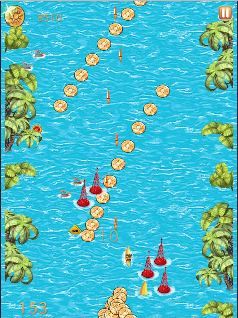 Collect coins, treasures and power ups along the way. Power ups include super magnets, defense shields, fast turbo, banana gunship