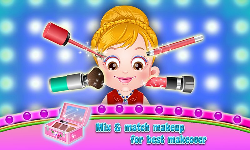 It's Makeup time! - Stunning makeup choices are available. Pick glittery makeup shades of your choice to apply on Baby Hazel.