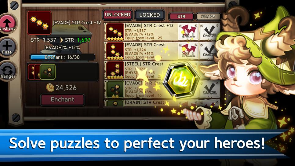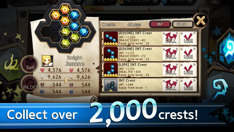 Collect and combine infinite number of crests to craft your own heroes to the way you want to.