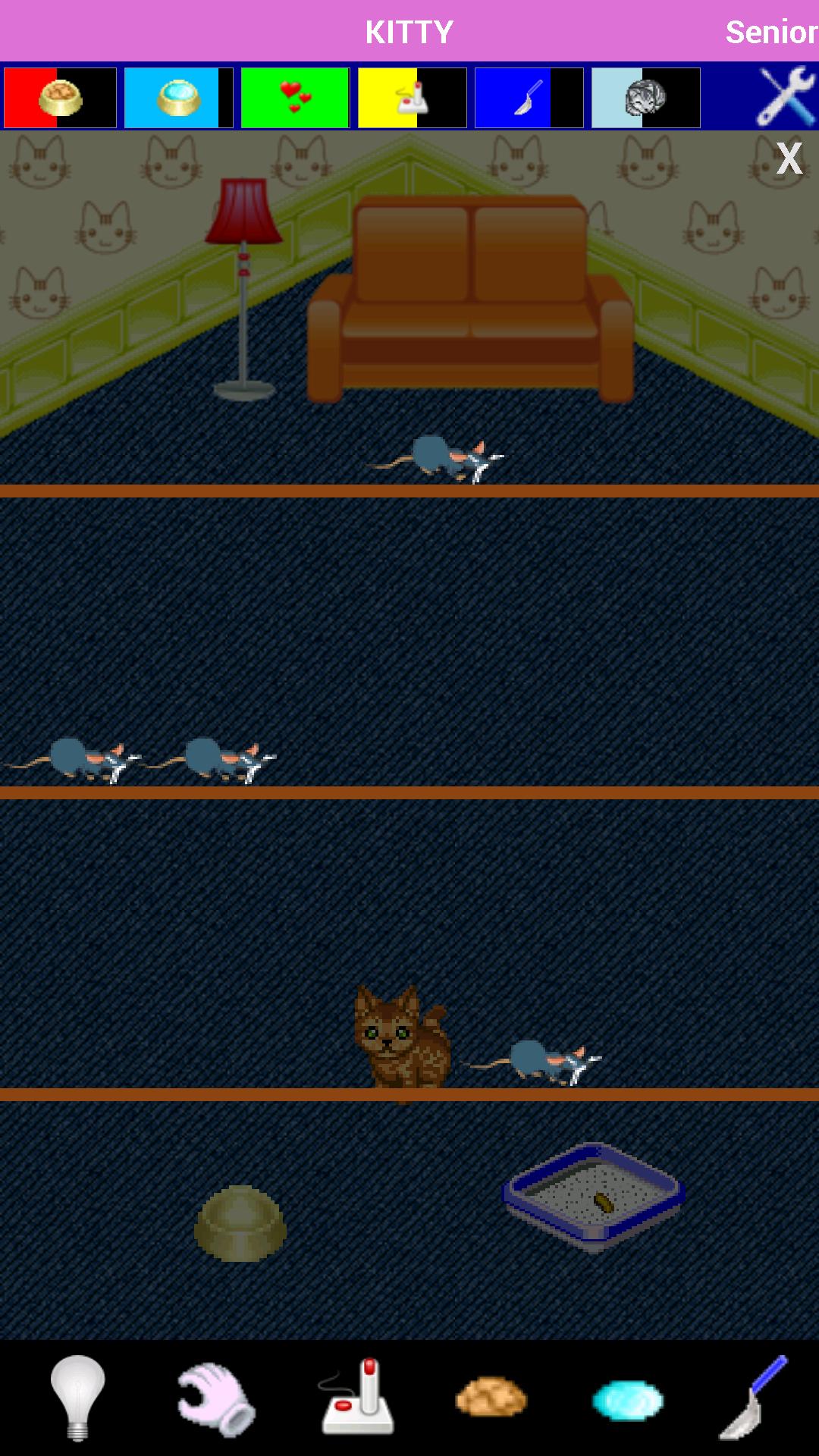 - Joystick: click on it to play Rock, Paper, Scissors with the virtual cat. This will also load up the loveliness bar.