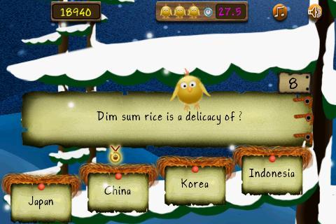 Help Scooter, the cute baby canary bird take first steps to flying by clicking on the right answers. Set in a nice winter theme the quiz covers a wide range eg Business, Entertainment, People, Countries, Books, Geography, History, Places, Science and Sports.