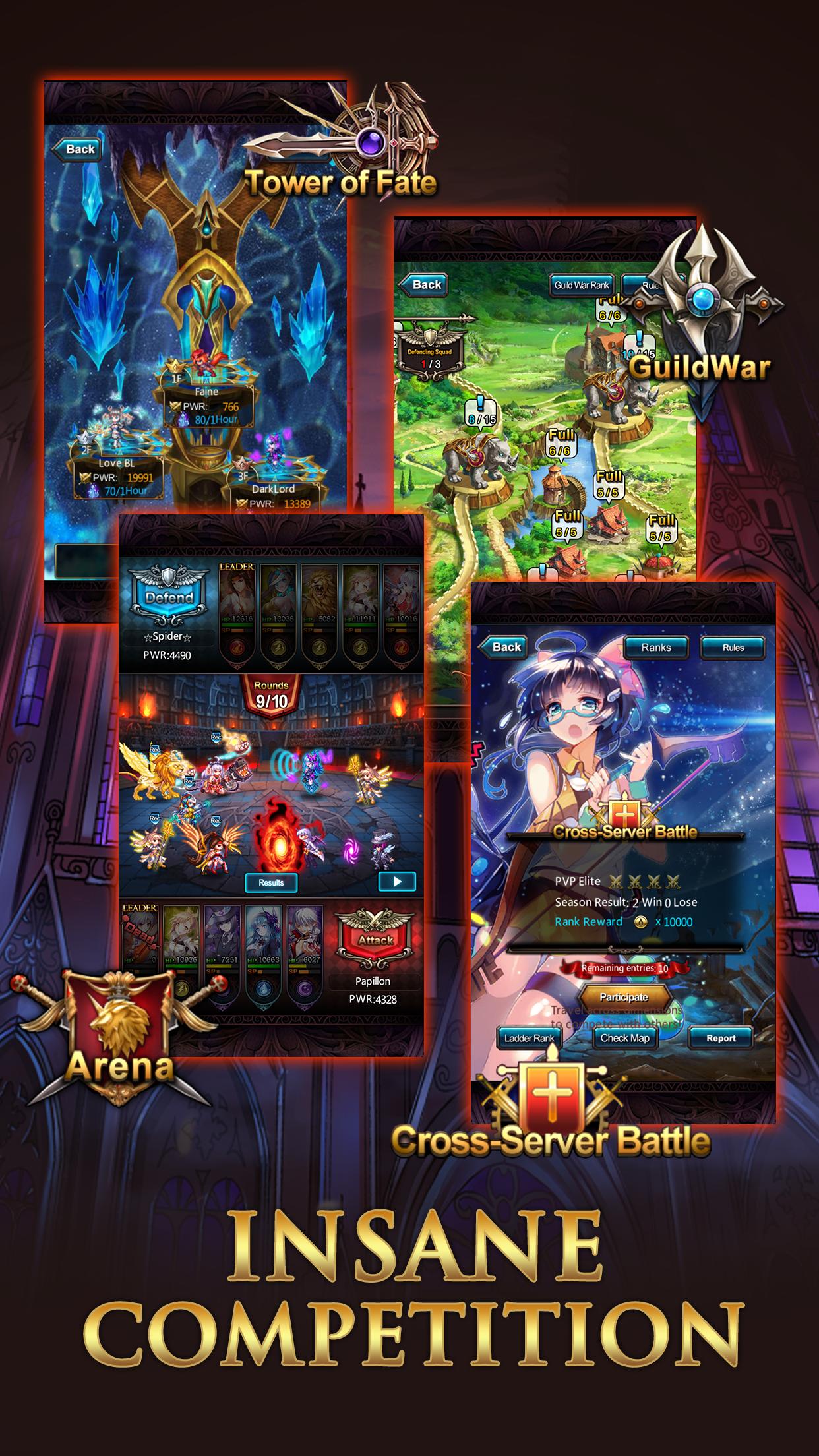Join Lilo.I, the last Royal Vampire, and her heretic allies in their incredible battle against the armies of the Holy Land! Assemble, customize and infinitely enhance over 400 heroes as you do battle in an extraordinary combination of ultra-competitive PvE, PvP, and Guild vs. Guild gameplay! This will be the truest test of your strategic abilities, so take up the challenge and join the ultimate anime-action RPG!
