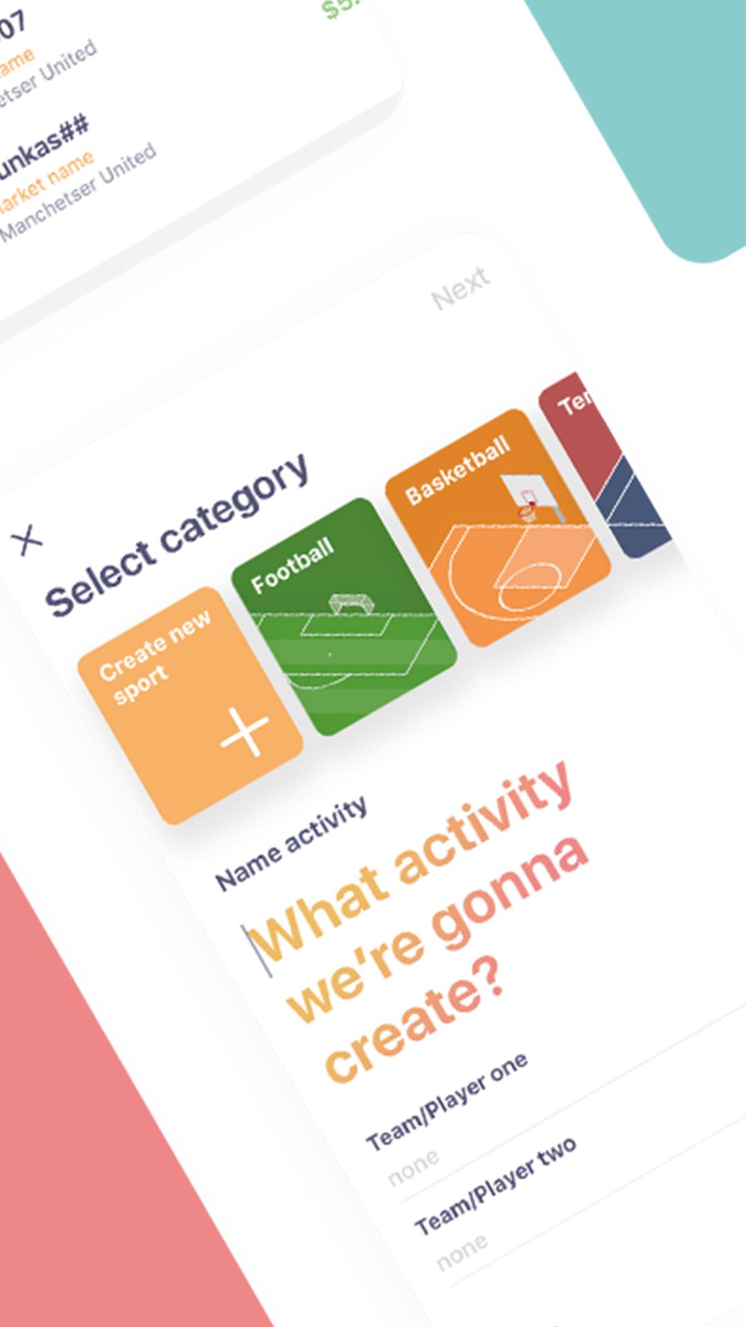 ● Set your bet by choosing default sports or create any custom sport you want.