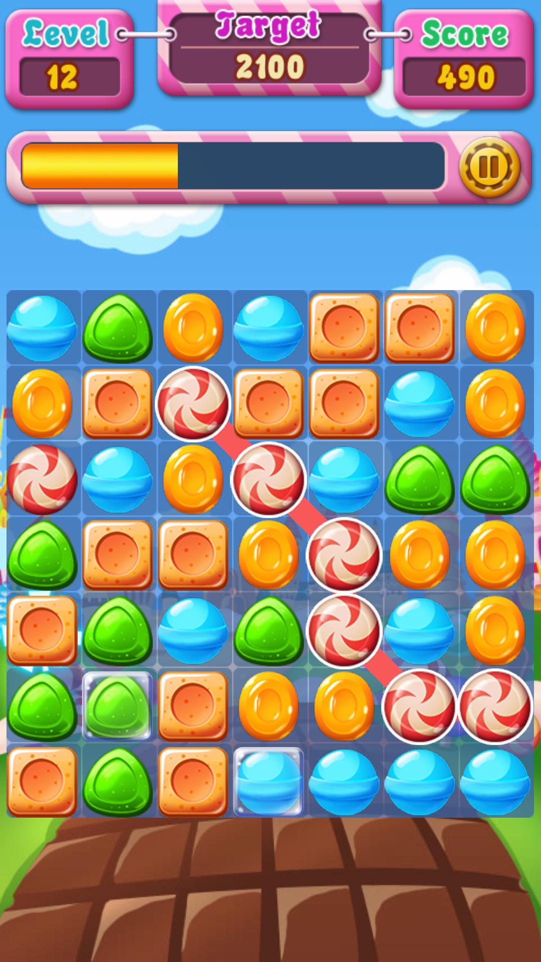 Clear three or more same candy to score points, try to use game props to make more combos!