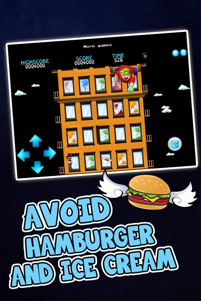 Clean all the windows on each floor to advance to the next level. Avoid the falling ice cream cones and flying hamburgers or else you won't make it!
