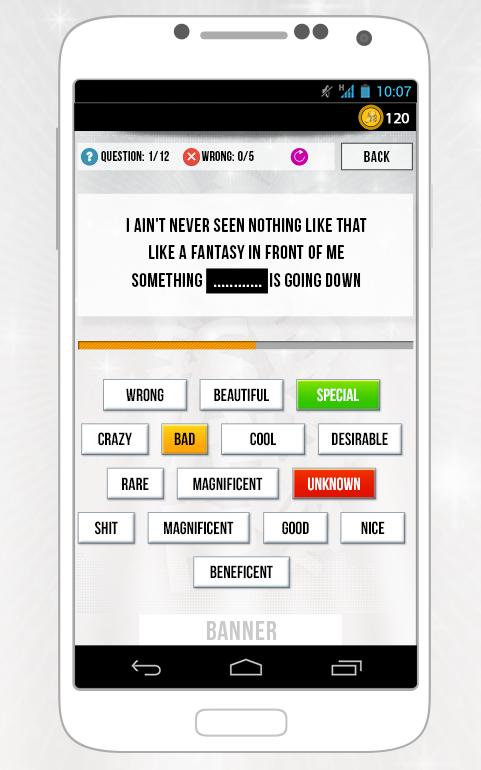 Your aim is to find the missing words in the lyrics of Coldplay Songs. This application is the new generation of trivia games. Forget about boring geography puzzles and enjoy doing your best by just filling the blanks in the tracks of the your favourite artist. Find the correct words and finish the same test on three different difficulty levels easy medium hard. Every track has a unique point and try now to collect all points by solving all quizzes.