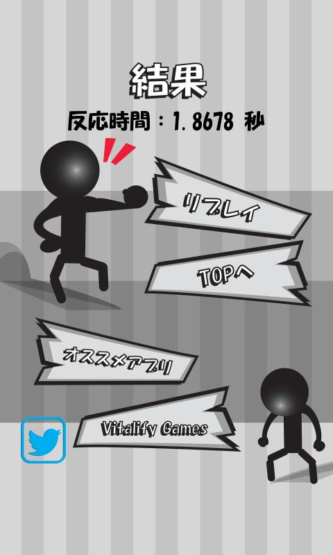 Tap the button '反撃(counterattack)' immediately after the opponent pull out a gun or Japanese sword. More quickly you tap the button, Higher score you will get.