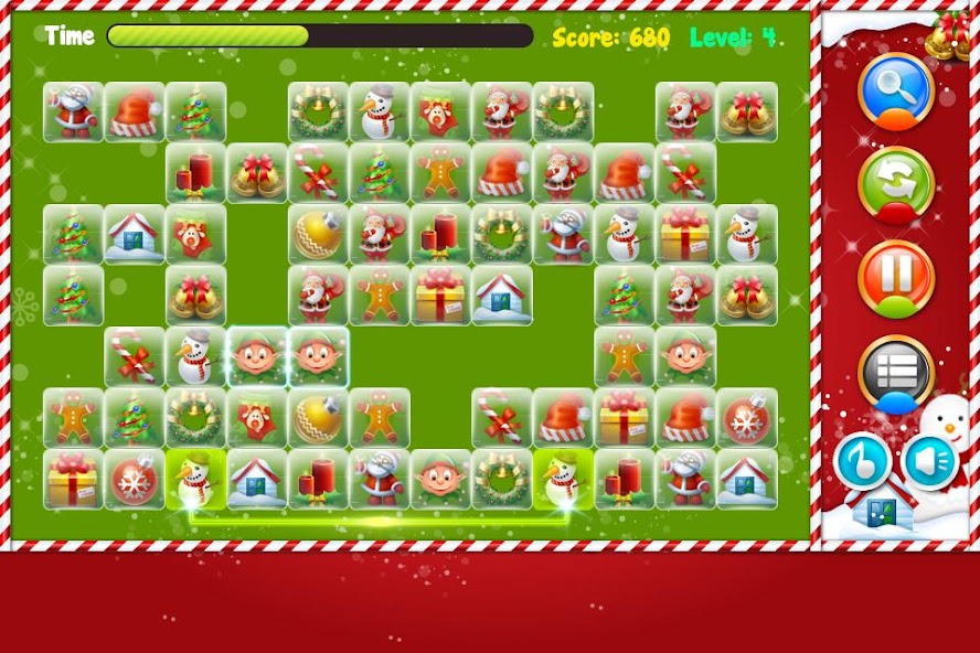 It is another type of familiar classics game. With the theme and icons of Christmas, it is a great experience because of the change in icons, the moving effects with increasing difficulty across by levels.