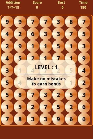 CrazyCalcs is a puzzle game inspired by games like "Add Like Mad" and "Math Madness". It is simple, addictive, challenging and fun to play. This is the best brain teaser which exercises your brain and keeps active. The objective of the game is to use math operations like addition, subtraction and multiplication to match the target number shown at the top. The game can be played in Challenge (time based) or Relax mode. If played with no mistakes, you earn bonus points. There are 100 levels for you to challenge yourself and exhibit your best maths skills. As levels increase, the range of numbers available for playing also varies, making it more challenging. You can undo your selection by selecting the same cell again. Don't exceed target number (make no mistakes) to earn bonus points at the end of each level.