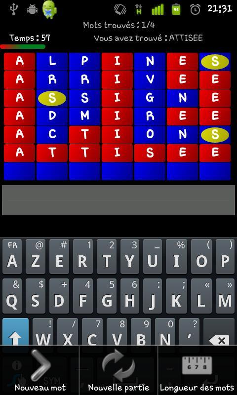 Play freely, against the watch or challenge your friends in duel, through our 6 -letters dictionary of more than 8000 words. And up to 11 letters in Demotus Pro!