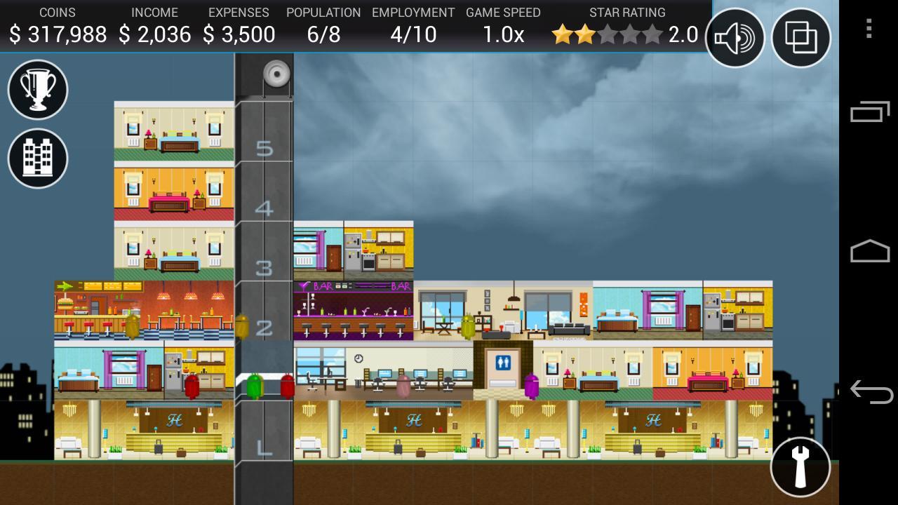 Inspired by the classics Yoot Tower and Sim Tower from the 1990's. No other skyscraper building game on Google Play lets you build like the original tower sims.