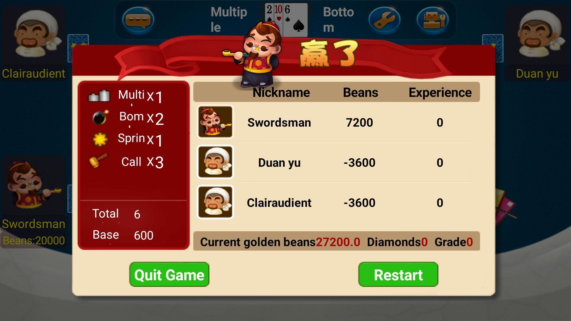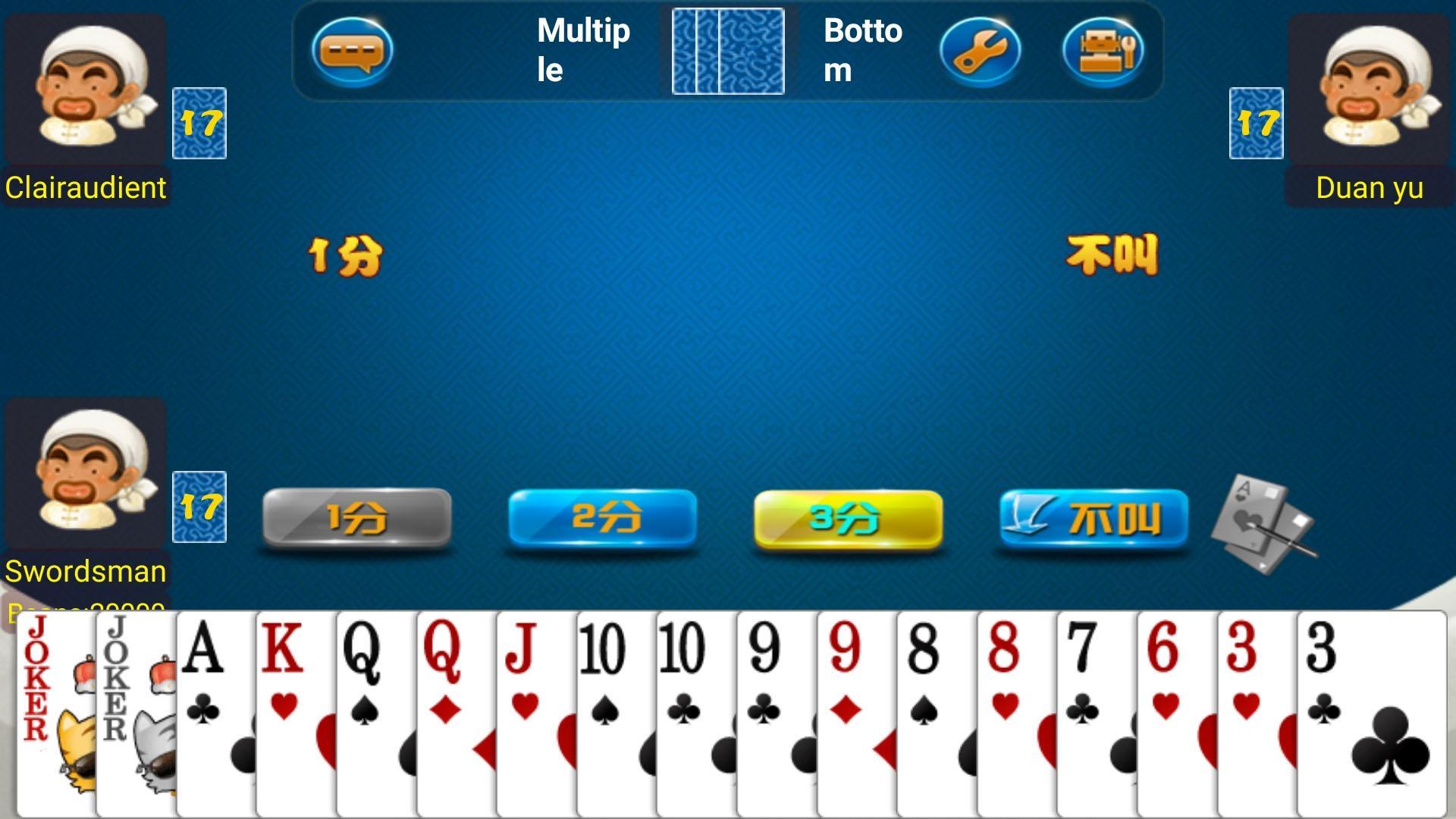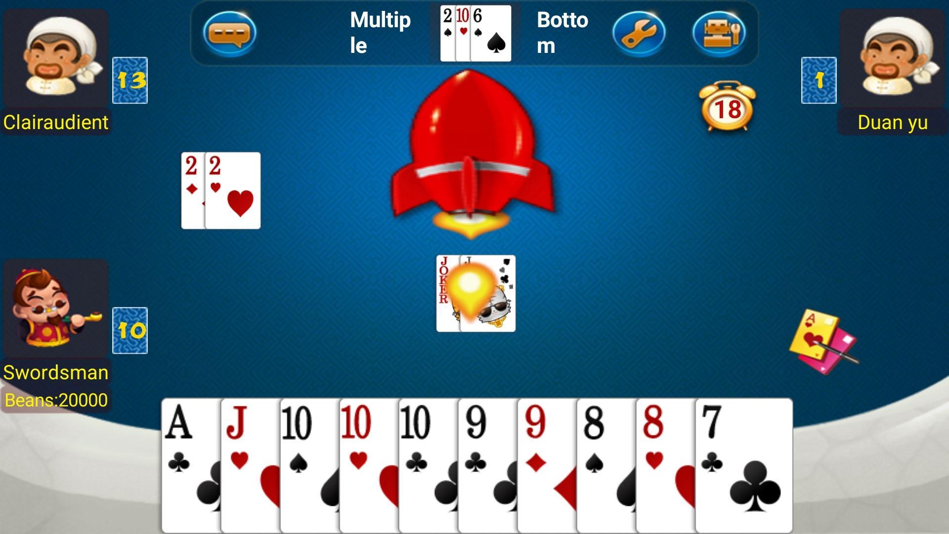 Fight the Landlord Problem Description Fight the Landlord (斗地主) is a card game for three players. In each hand one player, the "landlord", plays alone and the others form a team(may called two peasants). The landlord's aim is to be the first to play out all his cards in valid combinations, and the team wins if any one of them manages to play all their cards before the landlord. A complete deck consists of 52 standard cards plus 2 jokers, red and black. The cards rank from high to low: R(Red Joker), B(Black joker), 2, A, K, Q, J, T(10), 9, 8, 7, 6, 5, 4, 3. Each rank of standard card has 4 cards. The landlord plays first, and may play a single card or any legal combination. Each subsequent player in anticlockwise order must either pass (play no card) or beat the previous play by playing a higher combination of the same number of cards and same type. There are just two exceptions to this: a rocket can beat any combination, and a bomb can beat any combination except a higher bomb or rocket - see definitions below. In this game, there are thirteen types of combination that can be played: 1. Single card- ranking from 3 (low) up to red joker (high) as explained above. 2. Pair- two cards of the same rank, from 3 (low) up to 2 (high), for example 3-3, A-A. 3. Triplet- three cards of the same rank, for example 9-9-9. 4. Triplet with an attached card- a triplet with a single card added, the single card must be different from the triplet, for example 6-6-6-8. These rank according to the rank of the triplet - so for example 9-9-9-3 beats 8-8-8-A. 5. Triplet with an attached pair- a triplet with a pair added, the ranking being determined by the rank of the triplet - for example Q-Q-Q-6-6 beats 10-10-10-K-K. 6. Sequence- at least five cards of consecutive rank, from 3 up to ace - for example 8-9-10-J-Q. 2 and jokers cannot be used. 7. Sequence of pairs- at least three pairs of consecutive ranks, from 3 up to A. 2 and jokers cannot be used. For example 10-10-J-J-Q-Q-K-K. 8. Sequence of triplets- at least two triplets of consecutive ranks from 3 up to A. 2 cannot be used. For example 4-4-4-5-5-5. 9. Sequence of triplets with attached cards- an extra card is added to each triplet. Only the triplets have to be in sequence, for example 7-7-7-8-8-8-3-6. The attached cards must be different from all the triplets and from each other. Although triplets of 2 cannot be included in the triplets sequence, a 2 or a joker or one of each can be attached, but not both jokers. 10. Sequence of triplets with attached pairs- an extra pair is attached to each triplet. Only the triplets have to be in sequence - for example 8-8-8-9-9-9-4-4-J-J. The pairs must be different in rank from each other and from all the triplets. Although triplets of 2 cannot be included in the triplets sequence, a pair of 2 can be attached. Note that attached single cards and attached pairs cannot be mixed - for example 3-3-3-4-4-4-6-7-7 is not valid. 11. Bomb- four cards of the same rank. A bomb can beat everything except a rocket or a bomb with higher rank. 12. Rocket- a pair of jokers. It is the highest combination and beats anything else, including bombs. 13. Quadplex set- there are two types: a quad (four cards of the same rank) with two single cards of different ranks attached, such as 6-6-6-6-8-9, or a quad with two pairs of different ranks attached, such as J-J-J-J-9-9-Q-Q. 2 and jokers can be attached, but you cannot use both jokers in one quadplex set. Quadplex sets are ranked according to the rank of the quad. Note that a quadplex set can only beat a lower quadplex set of the same type, and cannot beat any other type of combination. Also a quadplex set can be beaten by a bomb made of lower ranked cards. At the beginning of each round, the landlord has 20 cards and the others each get 17 cards, can the landlord has a strategy to bring out his cards all the way alone until he wins the game and leave no chance for the others to play?