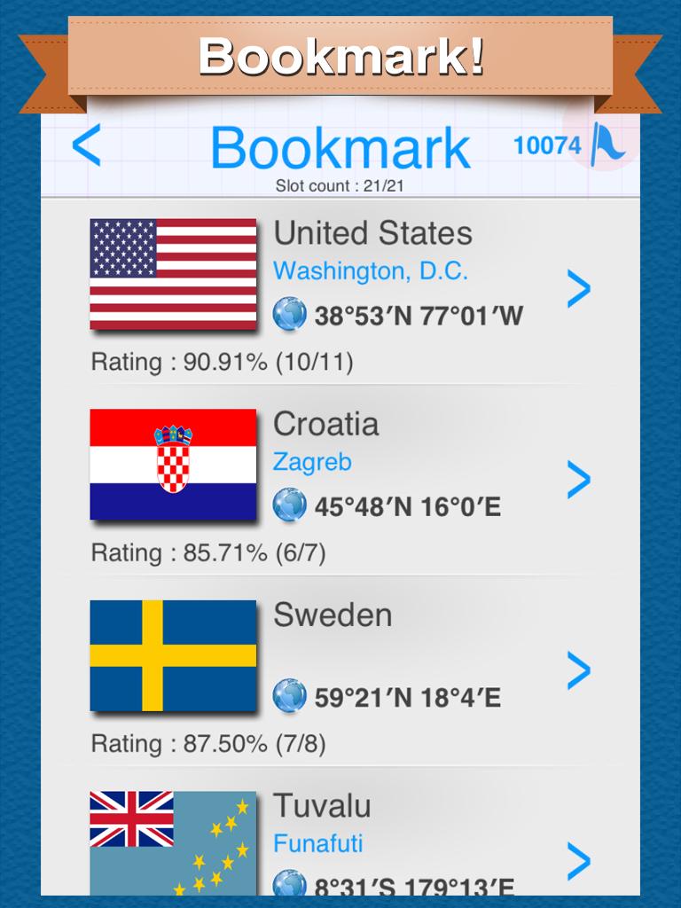 - You may know each national information. and also You can know the correct answer rate from the bookmark.