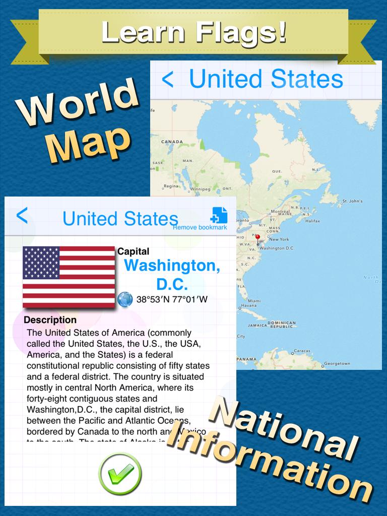 ## You can solve the flag quiz. As well as, You can learn national informations such as flag, country, capital, etc.