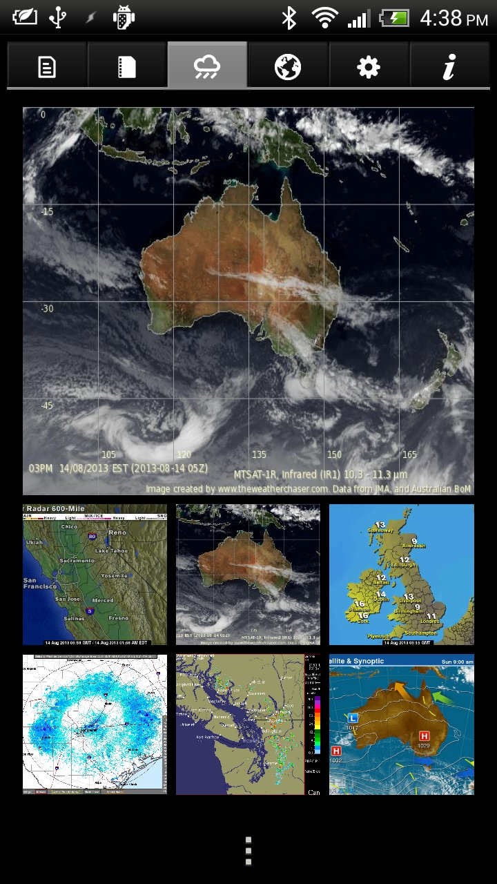 * Display online WX (Weather) Images (e.g. doppler radar, cloud cover, satellite, etc.).