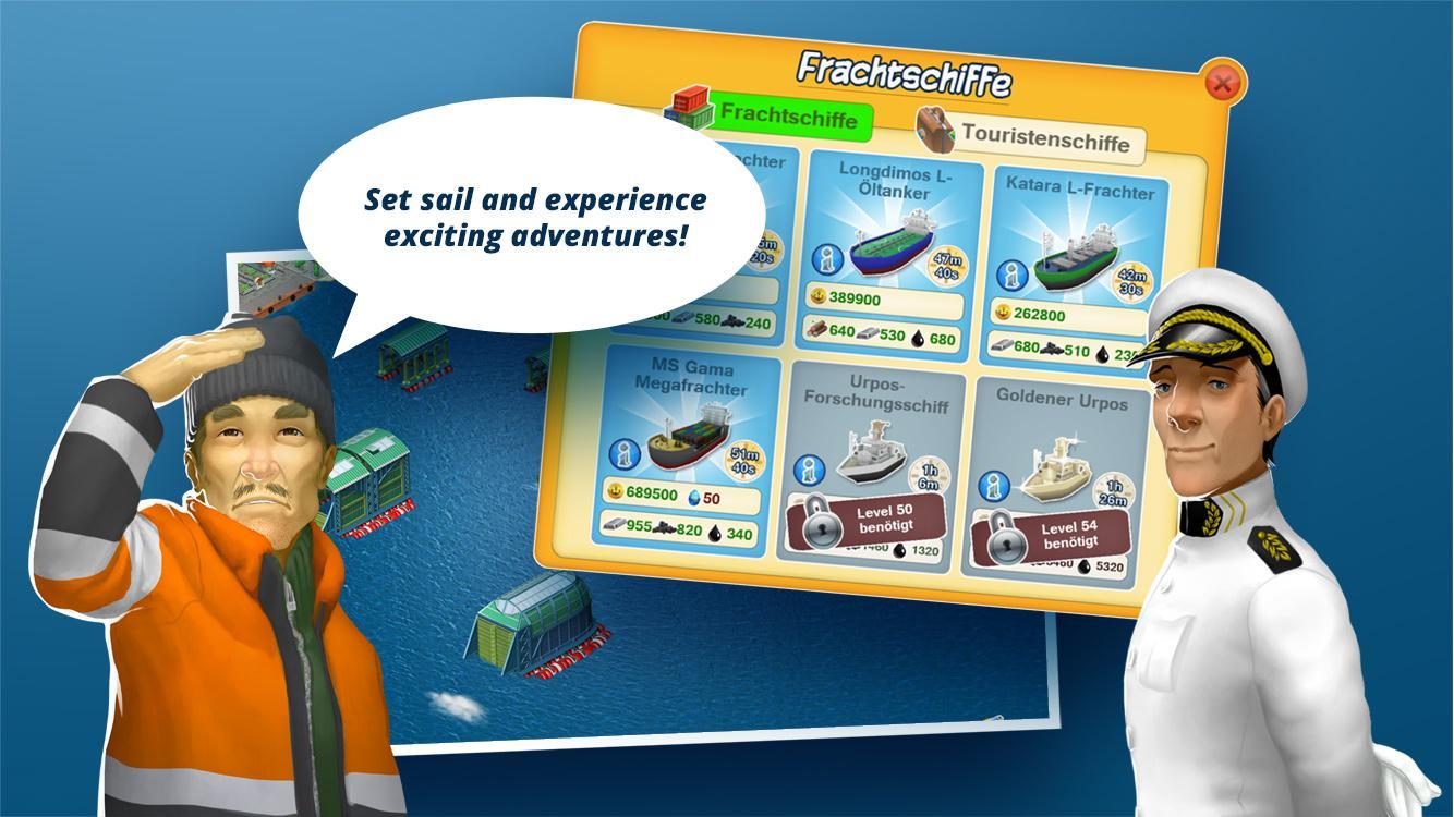 Experience the challenges and excitement of transport games right on your smartphone or tablet. In Harbor World, you’ll establish your own port. The experienced old sea dog Capt’n Rustbeard will show you the ropes and teach you the basics of the game – for instance, how to build your very first cargo pier. Download the logistics similar app for free and explore the fascinating world of ship games. Expand your harbor, build production sites and conduct trade. Each level unlocks more new and exciting ship simulator tasks and transport tycoon quests. Dive into the riveting world of boat games. Harvest various resources such as ore, wood, oil and coal. Expand your port to include dry docks, yacht piers, and even tourist piers. That’s right – you can even make your harbor a tourist destination. Discover a unique ship simulation on the go. Transport goods across the world’s oceans and prove your skill as a harbor manager. Harbor World offers you countless boat simulator and ship game features. Get yourself the transport simulation app and get going! Harbor World’s lovingly detailed 3D graphics and animations are sure to draw you in. Experience logistics game fun on the sea and on land. Harbor World’s appeal is not limited to its first-rate strategy and tycoon game features; you’ll also have extensive customization and decoration options. Dazzle your tourists with unique decoration items such as dolphin balloons and flowerbeds. The possibilities are endless. Harbor World’s wealth of exciting ship game features is sure to captivate you! These include: