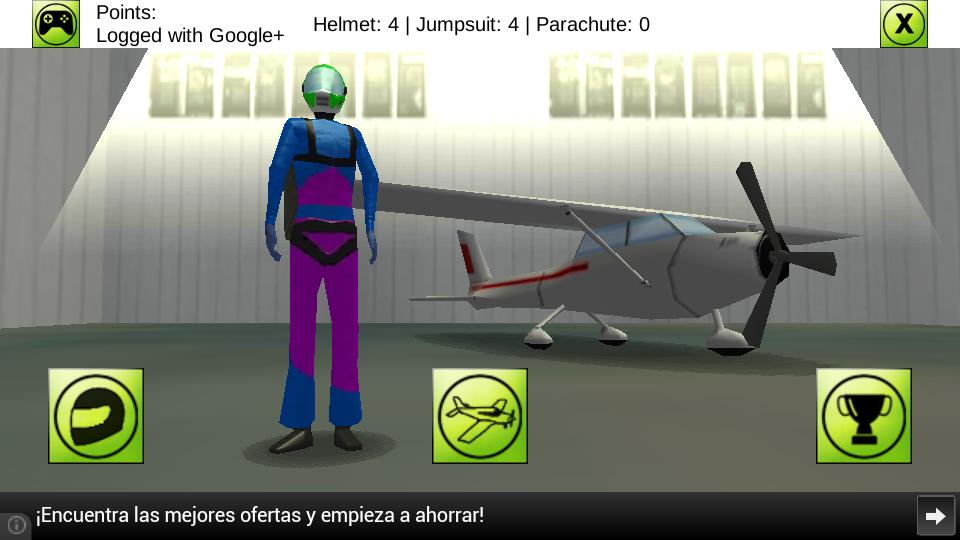 In HIGH JUMP you could rent different parts of jump equipment: helmet, jumpsuit and parachute. Every part of the equipment gives you different advantajes to get more points.