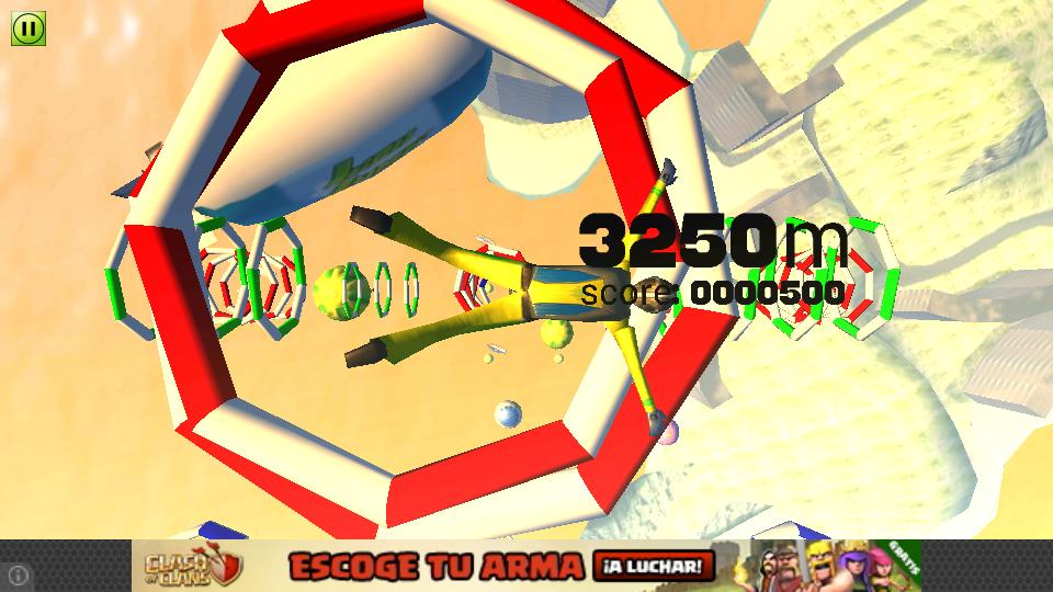 Move your device to cross all the rings and make somersaults sliding your finger on the screen to get the biggest points quantity during the fall.