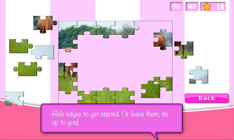 Are you a horse fan, too? Then you'll surely like the images in this horse puzzle game a lot! Brown horses, white horses, a foal in the meadow, what a beautiful images. Have fun making these Horse Jigsaw Puzzles!