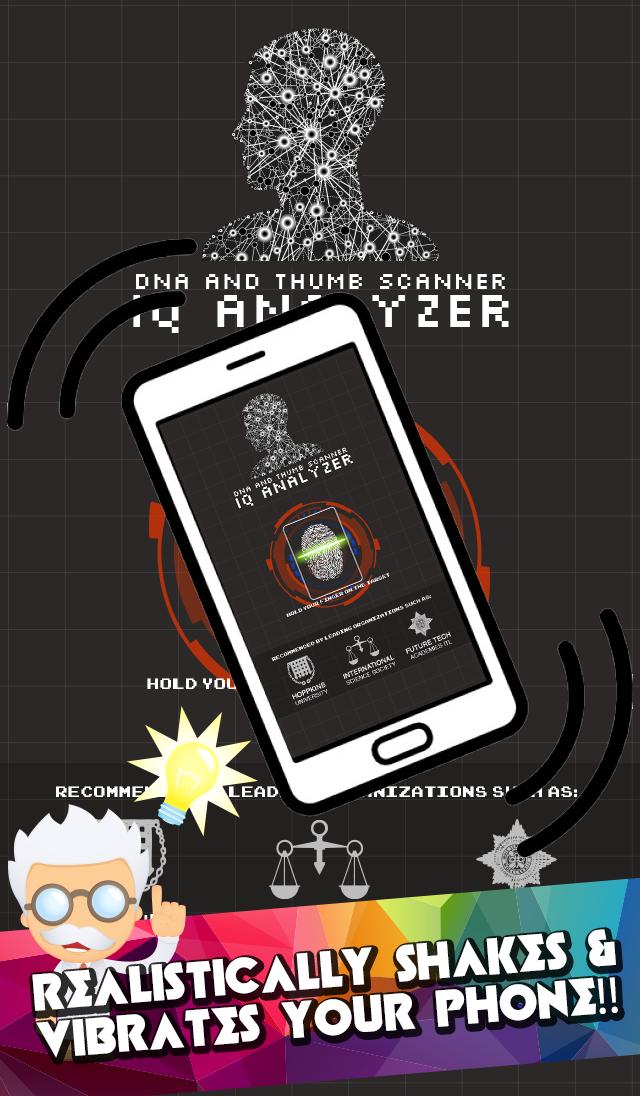 IQ Fingerprint Scanner Prank is the best fake IQ test and does not have the ability to read your fingerprint or DNA, this is purely a prank app.