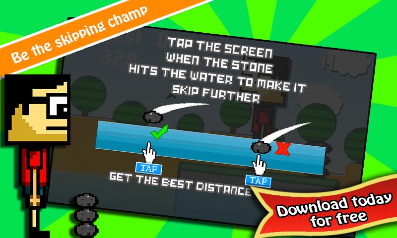 Jumpy Block Skim : A Skipping Stone Game. Try to throw your pebble as far as you can across the pond. Bring back some of those childhood memories of stone skimming with your friends and family. Just tap the screen to throw, and tap the screen again when the stone is about to hit the water to make it travel further.