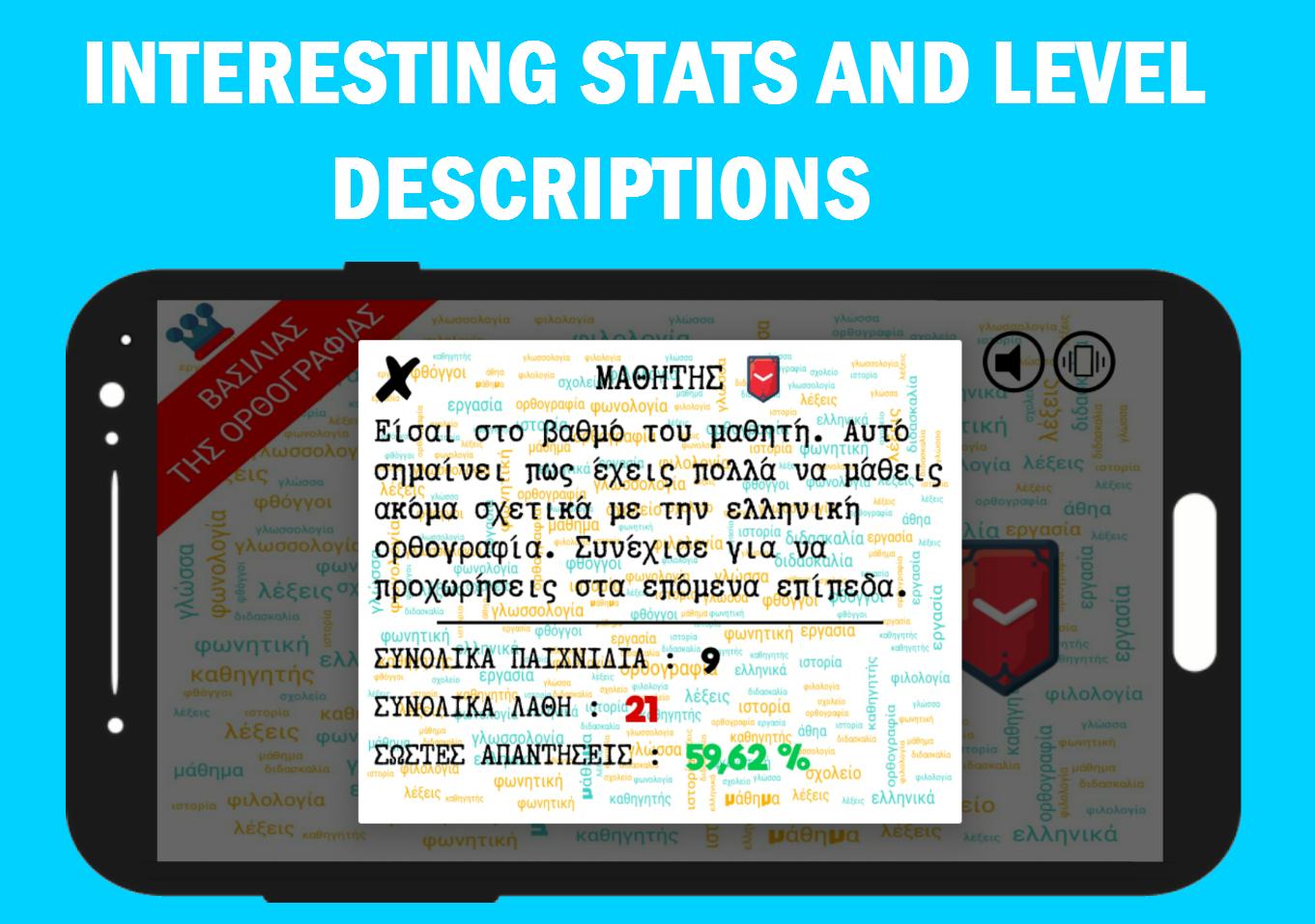 The rules are simple. You just have to check ONLY the words that are spelled correct as fast as you can. You always start with 3 lives and 3 Time Freeze helps but during the game you can earn more. Achieve highscores and earn new badges. Your ultimate goal is to become the new King of Greek Spelling.