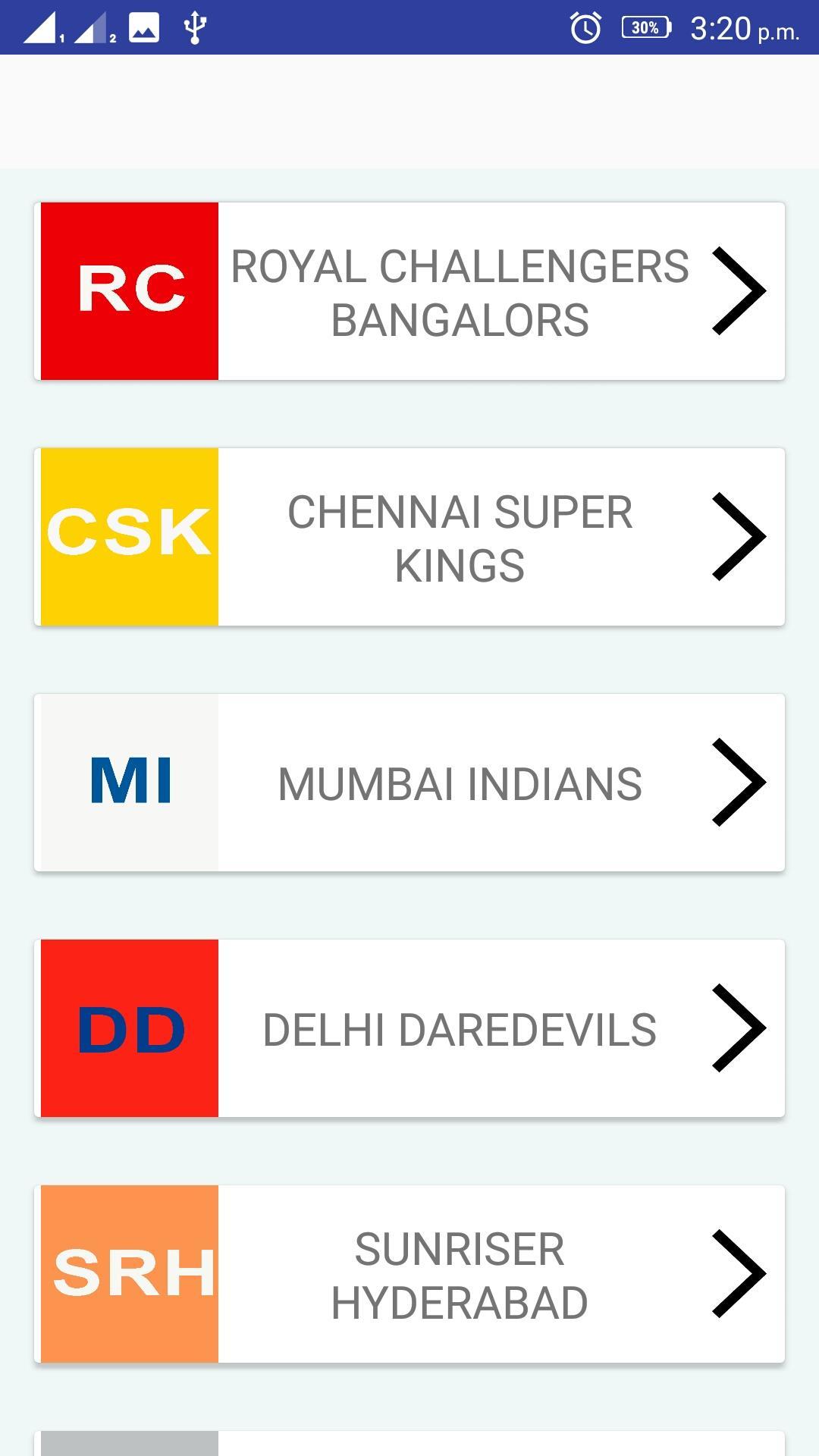 ipl 2018 team list